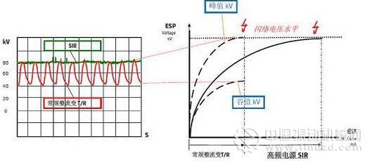 1、設(shè)計(jì)院的專家推薦高頻電源,但有些學(xué)者認(rèn)為認(rèn)為:目前在國內(nèi)范圍內(nèi)大量推廣的高頻電源并不能提高除塵效率,廠家誤導(dǎo),相反會(huì)降低除塵效率,高頻電源只是節(jié)能(甚至有專家認(rèn)為連節(jié)能也達(dá)不到)。專家指出目前國內(nèi)高頻電源廠家所宣傳的高頻電源由于低頻電源的波形圖(下圖一)來自于國外實(shí)驗(yàn)室內(nèi),并沒有國內(nèi)機(jī)組300MW或600MW的實(shí)際圖形,采用高頻電源后,電源功率會(huì)難以滿足,目前只適合于小電流電場(末電場)。并舉例說明:山西大同二電1000MW機(jī)組,除塵器采用高頻電源,灰分大時(shí),高頻電源放不出電,電流極低,造成煙道、電場堵灰,難以處理。龍凈在改造時(shí)考慮高頻電源功率的問題將一電場一分為二來解決。