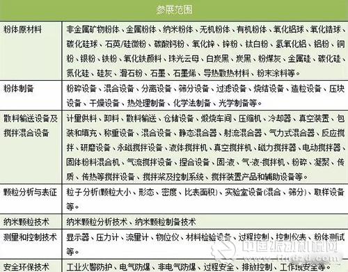 參展范圍:(如下表)
