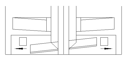 HUMBOLD浮選機屬于自吸式浮選機,其發(fā)展主要是葉輪形式的改進,大體經(jīng)歷了三個階段,圓盤式、單偏擺式和雙偏擺式,如圖5所示。后來在大型浮選機中又出現(xiàn)了多偏擺式,多偏擺葉輪由數(shù)塊固定在相鄰直板上的傾斜板構成,葉輪每旋轉一次,葉輪和定子之間的空間就會不斷發(fā)生變化,進而引起壓力的周期性變化,從而不間斷地析出微泡。在葉輪周圍及上面鋪設格板,將湍流區(qū)和層流區(qū)分開,以達到穩(wěn)定礦漿流和增加泡沫層的二次富集作用,但同時這種隔板也會影響礦化氣泡的正常上浮,降低精煤產(chǎn)率。HUMBOLD浮選機的主要特點是處理量大、電耗小、能處理較高濃度的礦漿。