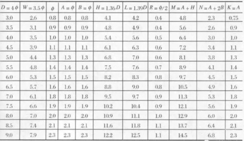 注:表1中D、W、Φ、A、B、H、L、R、M、N、K的含義見圖3