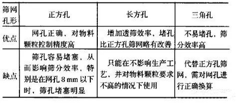 把孔形為正方孔、長方孔和三角孔種篩網(wǎng)的性能做一比較見表。從表2中可以看出,在這種篩網(wǎng)中,三角孔防堵篩網(wǎng)是首選的篩分效率高,不易堵孔的小網(wǎng)孔篩網(wǎng)。