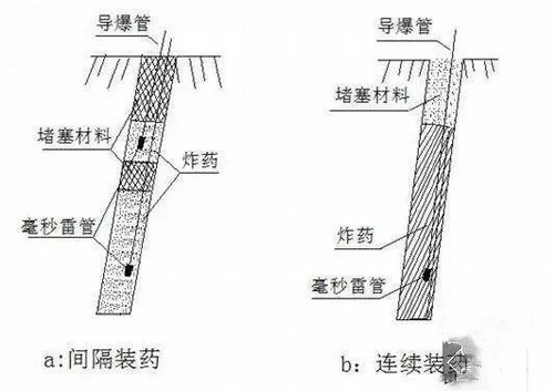 深孔爆破孔裝藥結(jié)構(gòu)示意圖