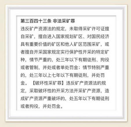 所以,近年來(lái),國(guó)家對(duì)于非法濫采的打擊力度是越來(lái)越強(qiáng)。在全國(guó)各地,因?yàn)榉欠ú缮氨惶幰跃揞~罰款,甚至定罪入獄的比比皆是。