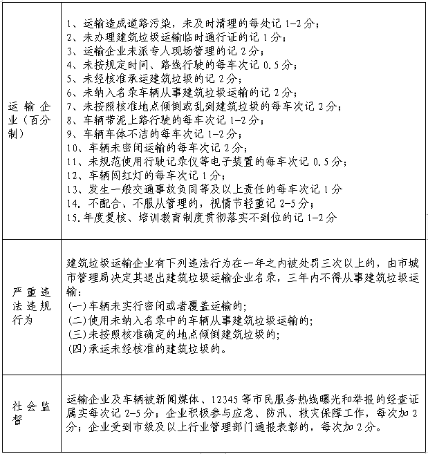 2.建筑垃圾運輸企業(yè)考核記分標準