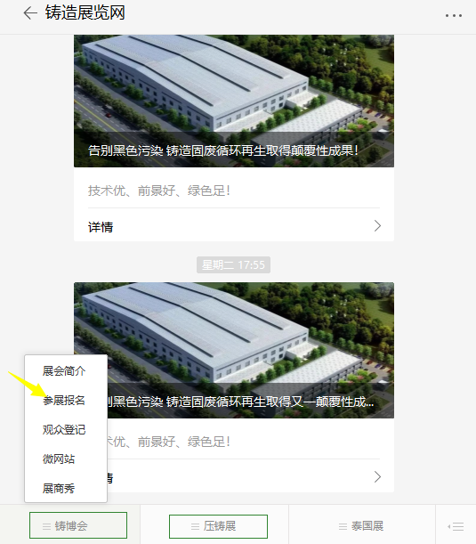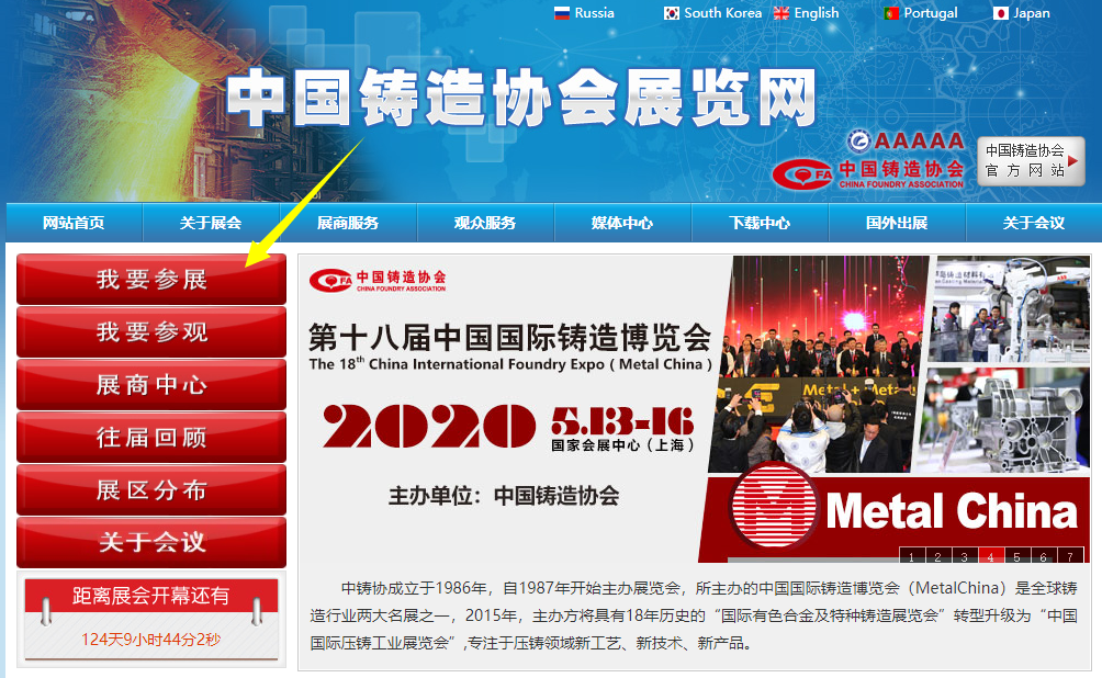 點(diǎn)擊頁面底部“鑄博會(huì)”或“壓鑄展”,選擇“參展報(bào)名”
