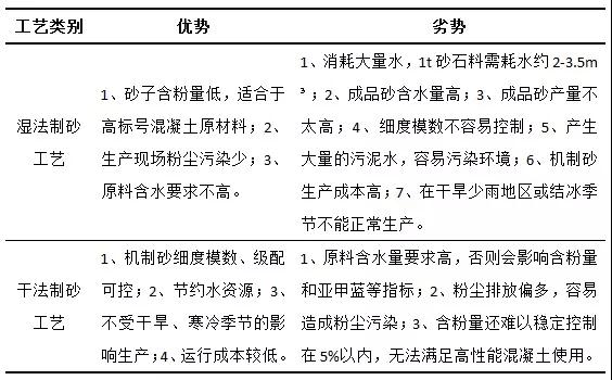 上表列出了兩種制砂工藝各自的優(yōu)劣勢(shì),到底選擇濕法制砂還是干法制砂,取決于所處的地區(qū)和水資源情況、原料含水量情況、機(jī)制砂石粉含量、投資和成本考慮的具體要求,應(yīng)依據(jù)自身生產(chǎn)情況綜合考慮選擇工藝。