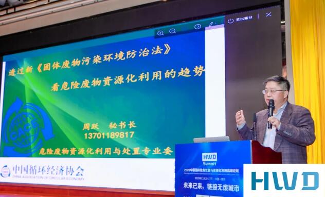 下午的會議首先由中國循環(huán)經(jīng)濟協(xié)會危險廢物資源化利用與處置專業(yè)委員會秘書長周躍先生發(fā)表演講。周躍先生在現(xiàn)場提出了構(gòu)建我國危廢資源化利用產(chǎn)品標(biāo)準(zhǔn)體系的設(shè)想。