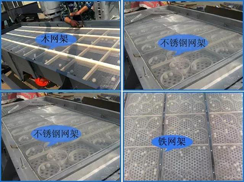 另外,篩網(wǎng)的自清理能力差也很可能導(dǎo)致網(wǎng)孔堵塞的情況,這時(shí)候如果振動(dòng)篩的情況允許的話,可以裝一個(gè)托球板,它利用了彈跳球的原理可以使篩網(wǎng)得以清理。