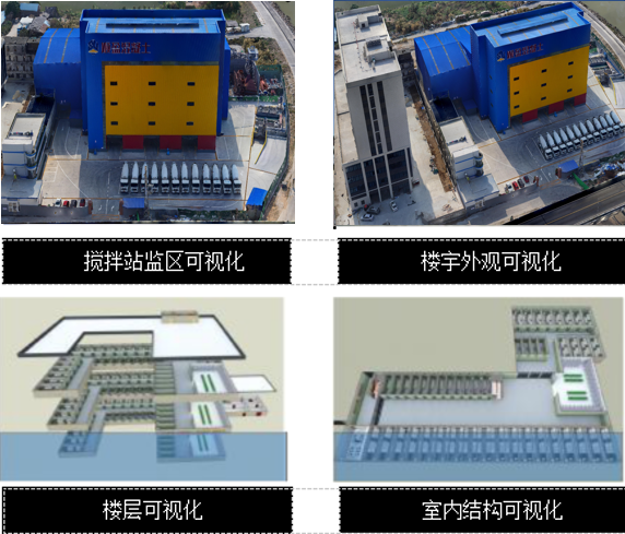 通過3D可視化技術(shù)手段,實(shí)現(xiàn)攪拌站全場景3D仿真可視瀏覽。場景構(gòu)建包括攪拌站監(jiān)區(qū)場景、樓宇外觀、樓層、室內(nèi)結(jié)構(gòu)、特定設(shè)備內(nèi)部等各層級(jí)場景的可視化。