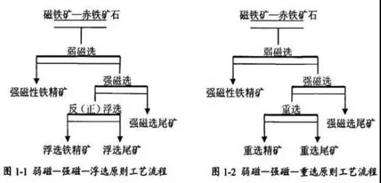 (1)弱磁選與重選、浮選、強(qiáng)磁選聯(lián)合。