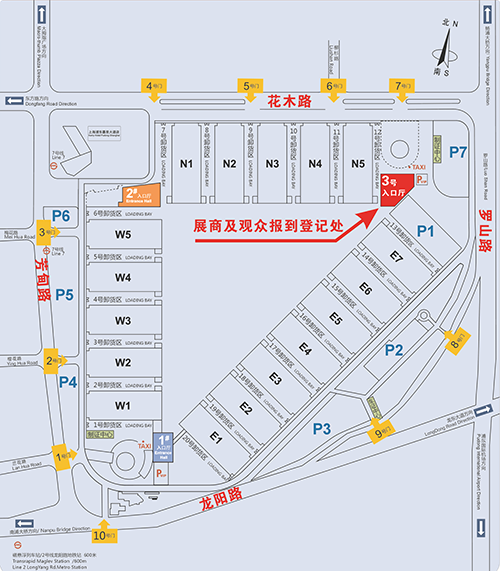 2、乘坐軌道交通2號(hào)線至龍陽(yáng)路站換乘軌道交通7號(hào)線到花木路站,步行至3號(hào)入口廳;或者您乘地鐵2號(hào)線至龍陽(yáng)路站,由4號(hào)口出站步行,均可直達(dá)展館。