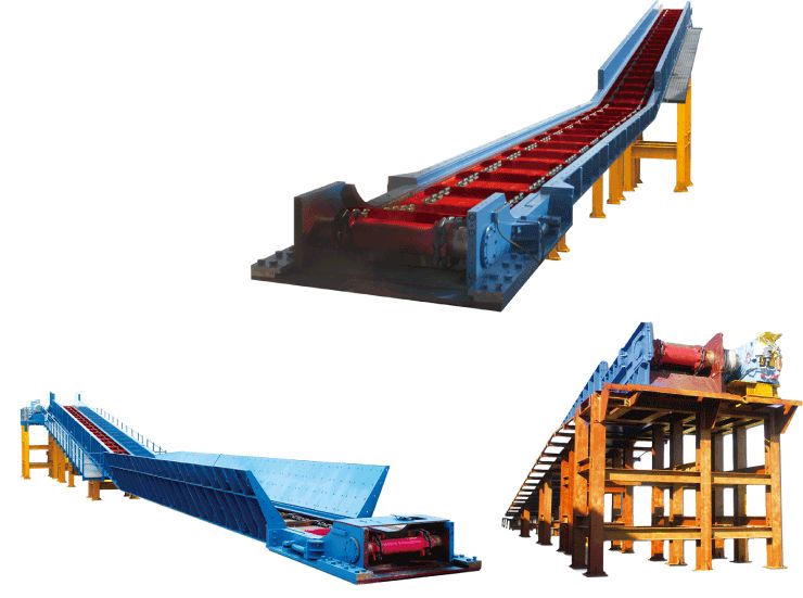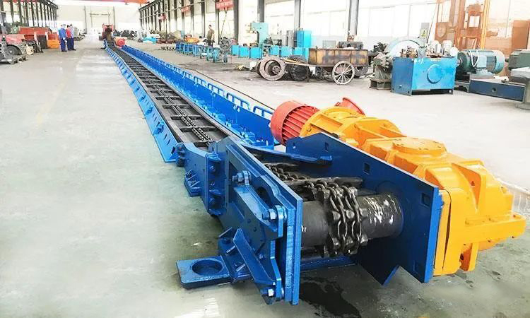 刮板輸送機全稱是埋式刮板輸送機,是以循環(huán)運行的鏈條作為牽引構(gòu)件,以鏈板作為承載構(gòu)件,可以沿水平或傾斜方向在槽內(nèi)運送散料的輸送設(shè)備,統(tǒng)稱為刮板輸送機。