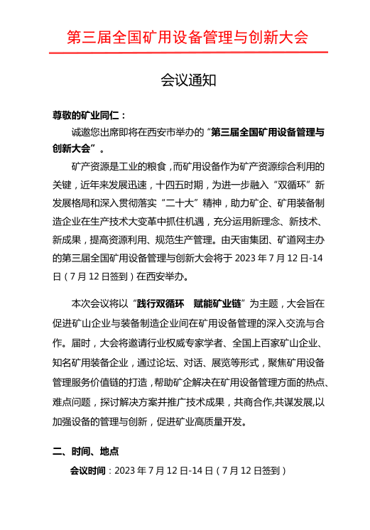 會議通知 | 第三屆全國礦用設(shè)備管理與創(chuàng)新大會