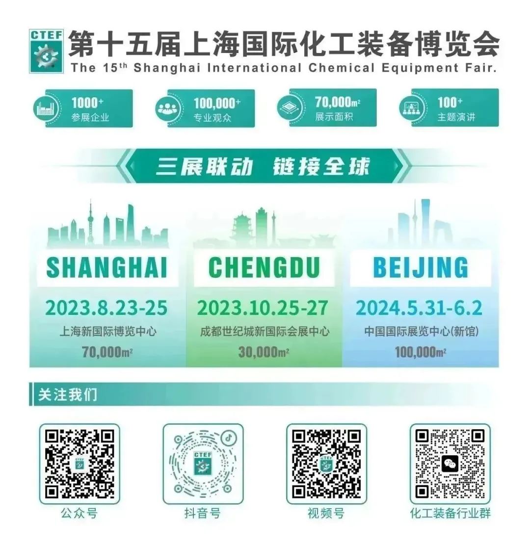 第十五屆上海國(guó)際化工裝備博覽會(huì)將于2023年8月23-25日在上海新國(guó)際博覽中心舉辦,預(yù)計(jì)參展企業(yè)1000+,展覽面積70,000m²,專(zhuān)業(yè)觀眾100,000+。展會(huì)設(shè)置石化裝備、化工單元設(shè)備、換熱器、蒸發(fā)結(jié)晶設(shè)備、微反應(yīng)器、化工粉體加工輸送、化工三廢處理設(shè)備、泵閥管道、智慧化工園區(qū)、化學(xué)品儲(chǔ)運(yùn)包裝、安全防爆、儀器儀表等專(zhuān)區(qū), 被業(yè)界譽(yù)為“一年一度的化工裝備大會(huì)”。