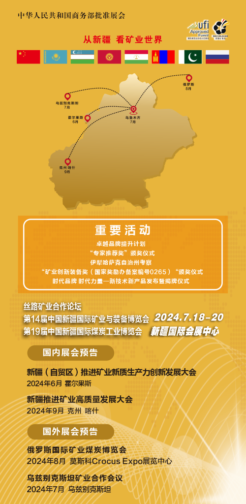 “絲路礦業(yè)合作論壇及第14屆中國(guó)新疆國(guó)際礦業(yè)與裝備博覽會(huì)”、“第19屆中國(guó)新疆國(guó)際煤炭工業(yè)博覽會(huì)”立足新疆資源稟賦、區(qū)位優(yōu)勢(shì)及政策優(yōu)勢(shì),致力于為礦業(yè)、煤炭、能源產(chǎn)業(yè)發(fā)展搭建一個(gè)高效務(wù)實(shí)的溝通合作平臺(tái),為新時(shí)代新征程加快科技創(chuàng)新,發(fā)展新質(zhì)生產(chǎn)力提供堅(jiān)強(qiáng)支撐,賦能行業(yè)高質(zhì)量發(fā)展。