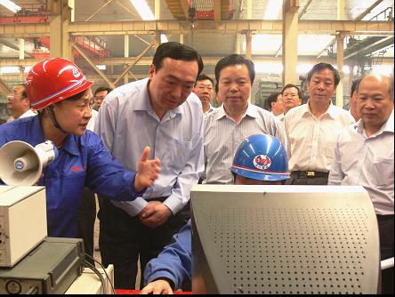 在河南太行振動機(jī)械股份有限公司,陳全國副書記深入車間班組,詳細(xì)詢問企業(yè)在金融危機(jī)沖擊下的生產(chǎn)銷售情況,鼓勵企業(yè)要依托市場,自主研發(fā),做大做強(qiáng),形成振動機(jī)械設(shè)備行業(yè)的特色優(yōu)勢。在看到由太行公司自主研制的特大型振動輸送裝置,了解到此裝置填補了國內(nèi)空白,為世界最大、國際領(lǐng)先的振動機(jī)械產(chǎn)品后,陳全國副書記強(qiáng)調(diào):“太行振動已經(jīng)步入了高速發(fā)展的快車道,我們一定要齊心協(xié)力,做大做強(qiáng)!”