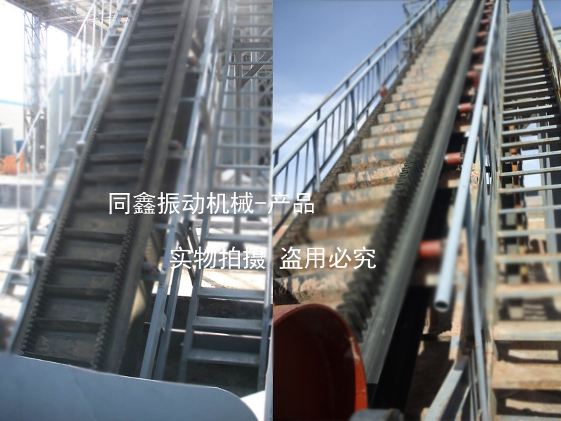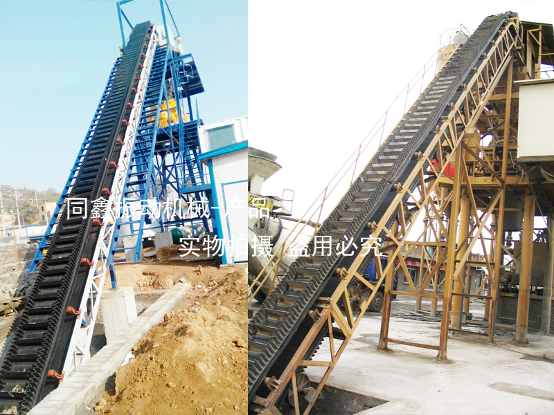 大傾角皮帶輸送機(jī)(擋邊帶式輸送機(jī))其結(jié)構(gòu)是在平形橡膠運(yùn)輸帶兩側(cè)粘上可自由伸縮的橡膠波形立式裙邊,在裙邊之間又粘有一定強(qiáng)度和彈性的橫隔板組成匣形斗,使物料在斗中進(jìn)行連續(xù)輸送。