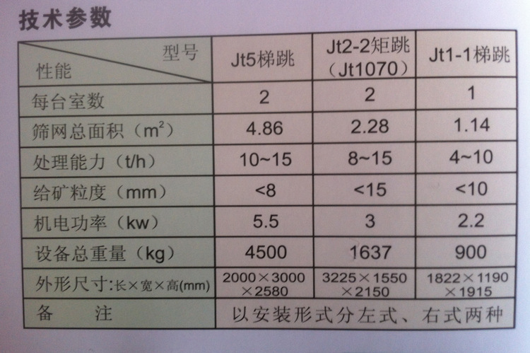 隔膜跳汰機(jī)參數(shù):