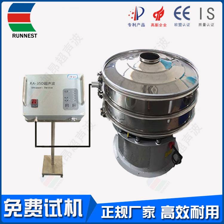 附加在RA系列超聲波振動篩篩網(wǎng)上的超聲振動波(機(jī)械波),使超微細(xì)粉體接受巨大的超聲加速度,從而抑制粘附、摩擦、平降、楔入等堵網(wǎng)因素,提高篩分效益和清網(wǎng)效益。