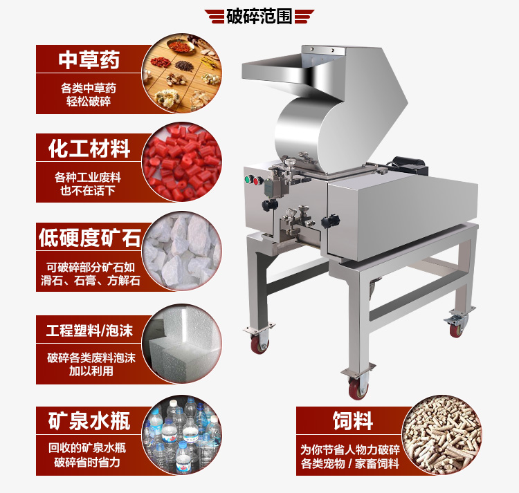 2、主要用途 本機(jī)主要適用于食品、醫(yī)藥、化工行業(yè),對(duì)堅(jiān)硬、含纖維等難加工物料進(jìn)行破碎加工,包括木質(zhì)類、鮮骨、塑料等等,也可作為微細(xì)粉碎加工的前道加工工序。