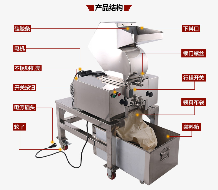 2、傳統(tǒng)破碎機(jī)的接料斗容量極其有限,料斗裝滿后,要關(guān)掉電源,換上另外一個(gè)接料斗才能繼續(xù)工作,導(dǎo)致浪費(fèi)人工、生產(chǎn)效率低,而本機(jī)的獨(dú)特設(shè)計(jì),大大減少了人工浪費(fèi),提高了生產(chǎn)效率。(備注:傳統(tǒng)破碎機(jī)無外翻裙邊設(shè)計(jì),加上出口離地面高度太低,根本無法接布袋)