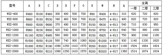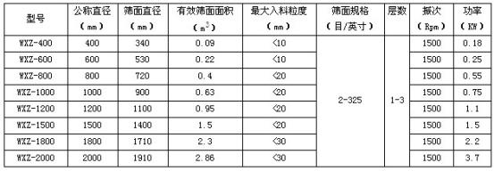 WXZ系列旋振篩主要技術(shù)參數(shù):
