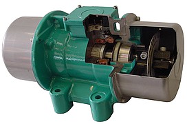 AViTEQ的電機(jī)為三相感應(yīng)電機(jī),在延長(zhǎng)的電機(jī)軸兩端分別安裝有偏心塊以產(chǎn)生離心力,在電機(jī)不工作時(shí),可通過(guò)調(diào)節(jié)偏心塊間的夾角以調(diào)節(jié)離心力的大小。電機(jī)轉(zhuǎn)動(dòng)時(shí)產(chǎn)生的離心力帶動(dòng)工作體(槽體、臺(tái)面、或其它形式)和散料的振動(dòng)。