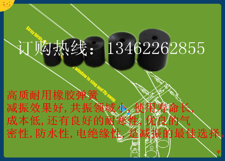 (2)復(fù)合彈簧 復(fù)合彈簧它是由金屬螺旋彈簧與橡膠復(fù)合而成的的一體彈簧,它集金屬?gòu)椈珊拖鹉z彈簧優(yōu)點(diǎn)于一身的新型彈簧,而且還克服了兩者的很多缺點(diǎn),它不但形狀和機(jī)械性能非常穩(wěn)定,可以承受重栽荷和大變形量,而且還具有隔振降噪的效果,工作起來非常的平穩(wěn),以及過共振區(qū)時(shí)間比較短等等的優(yōu)點(diǎn)。特別適合在礦山、冶金、煤炭等等的行業(yè)的大型振動(dòng)設(shè)備中使用。相比較橡膠彈簧,前者形狀受金屬螺旋彈簧限制,線性要求高,重量重,但是其承重載荷量大的優(yōu)點(diǎn)卻不是純橡膠彈簧可比擬的。