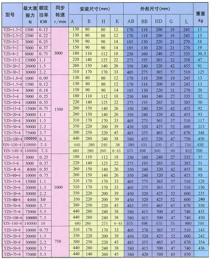 9、規(guī)格齊全,能滿足各類振動機(jī)械的工作需要。