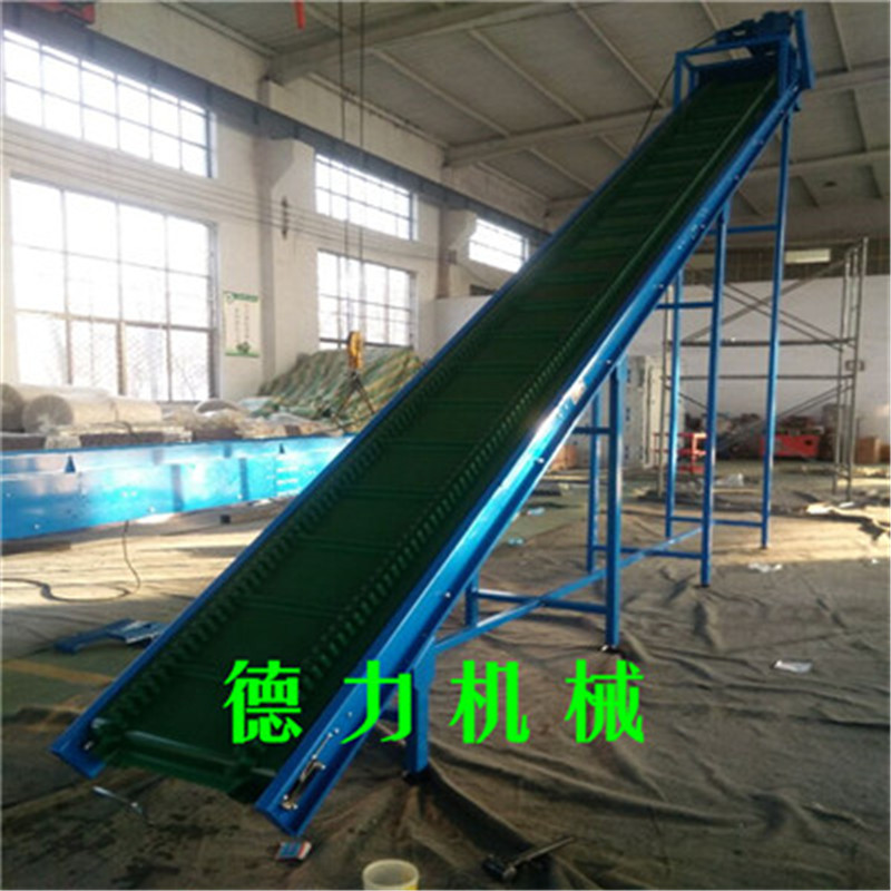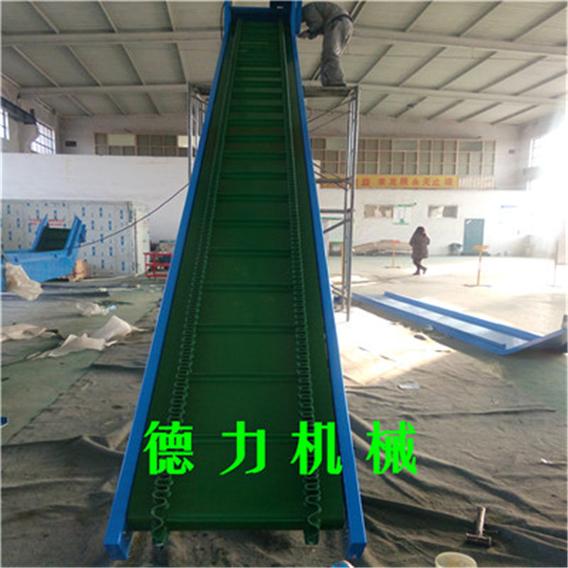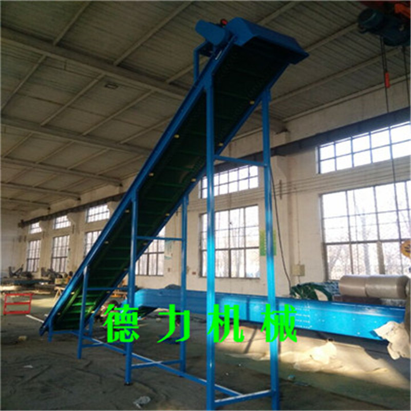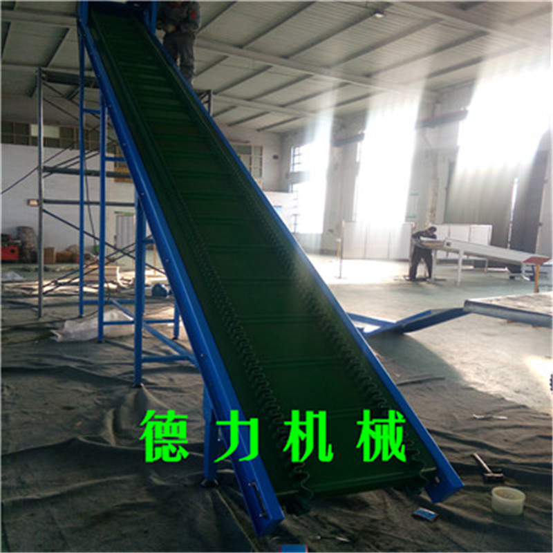 爬坡皮帶輸送機(jī)適用于樓層或高差間的貨物的連續(xù)輸送。傾斜角度小(≤30°)的爬坡皮帶機(jī),在皮帶上加裝檔條、治具、裙邊等方式從而使物體能在較大的角度上作提升輸送。具有效率高、輸送快、噪音低、不間斷等特點(diǎn)。特別適合小物料的輸送,如食品、注塑件、粉末以及各種零件行業(yè)。用于上下樓層、斜坡地形、天橋等具有高差的平面之間的物品輸送。在某些情況下可以代替升降機(jī)使用。在輸送顆粒狀物品時(shí)為防止物品因重力滾落,每隔一段距離可以加一塊擋板.