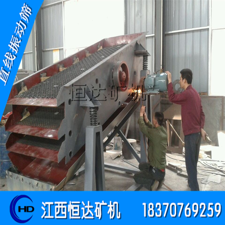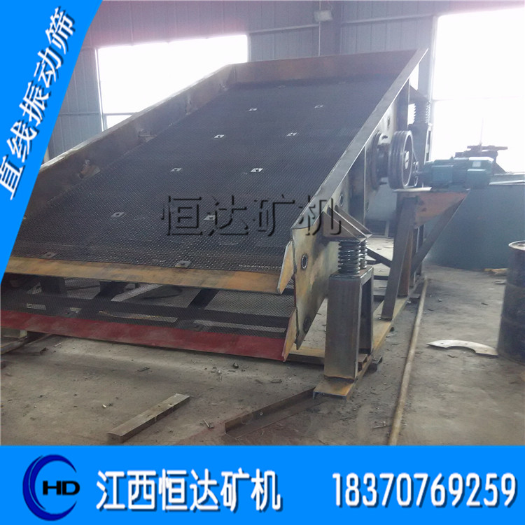 直線振動(dòng)篩是一種適合潮濕細(xì)粒級(jí)難篩物料干法篩分的振動(dòng)篩分機(jī)械設(shè)備,是目前國內(nèi)處理難篩物料的振動(dòng)篩分機(jī)械設(shè)備。振動(dòng)篩具有大振幅、大振動(dòng)強(qiáng)度、較低頻率和彈 性篩面的工藝特點(diǎn)。工作過程中始終保持較大的開孔率,從而篩分效率高、處理能力大,篩板更換方便,降低了成本。振動(dòng)篩超大篩面和大處理能力可滿足現(xiàn)場(chǎng)的生 產(chǎn)需要。振動(dòng)篩篩子的結(jié)構(gòu)采用多段篩面振動(dòng)而篩箱和機(jī)架不參與振動(dòng)的運(yùn)動(dòng)方式,使篩子實(shí)現(xiàn)了大型化。