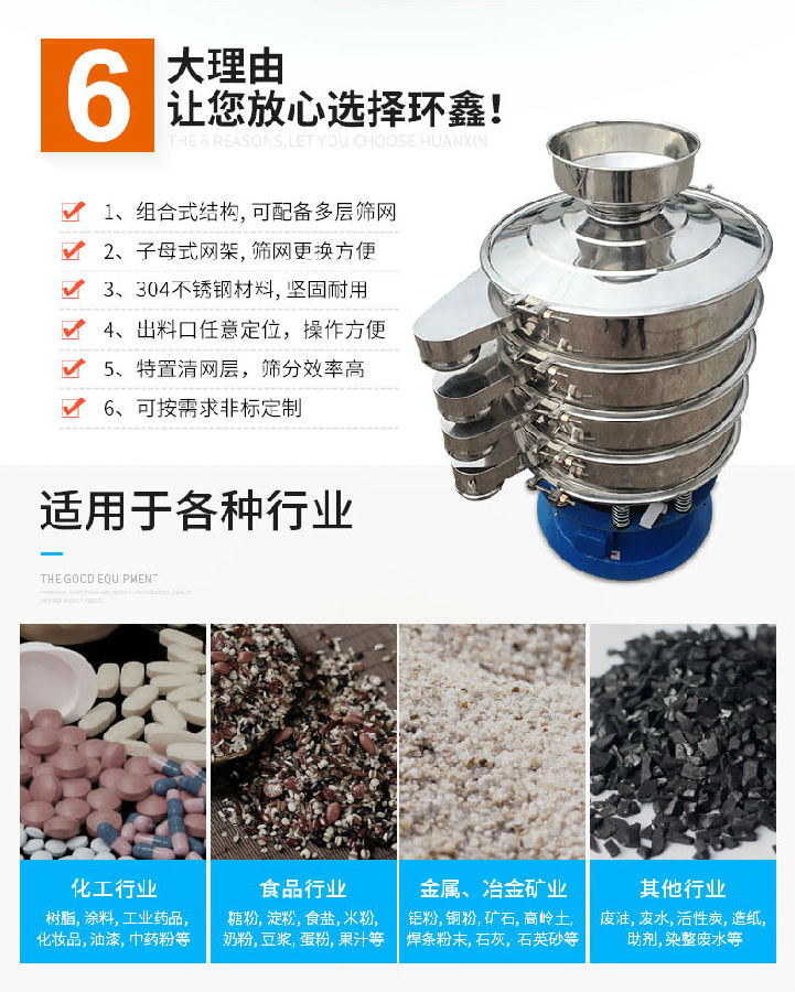 高嶺土振動篩可廣泛應(yīng)用于食品、醫(yī)藥、顏料、國防、化工、冶金、地質(zhì)、磨料、陶瓷、礦業(yè)、電子等行業(yè)的漿料、粉料、顆粒生產(chǎn)分級過濾,該產(chǎn)品規(guī)格多樣,層數(shù)可選,環(huán)鑫牌顏料粉振動篩篩分均勻,304材質(zhì)不污染物料,動力強(qiáng)勁。