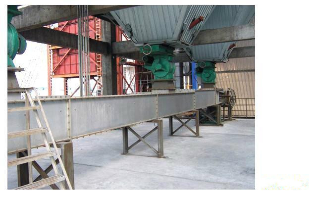 FU系列鏈式輸送機,由于取料具有內(nèi)摩擦力和側(cè)壓力等特性,輸送鏈的運動使機槽內(nèi)的物料之內(nèi)部壓力和顆粒間的內(nèi)摩擦力增加,當料層之間的內(nèi)摩擦力大于物料與槽壁間的外摩擦力時,物料就隨著輸送鏈一起,像水一樣的向前流動,料層高度與機槽寬度的比值滿足一定條件時,可形成穩(wěn)定物料流。