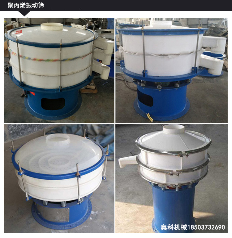 奧科聚丙烯圓形防腐振動(dòng)篩在全國(guó)使用范圍內(nèi)又成為塑料振動(dòng)篩、塑料振蕩篩、塑料震動(dòng)篩、塑料圓震篩、塑料化工過(guò)濾振動(dòng)篩等等多種不同稱(chēng)呼,主要使用目的是將腐蝕性較大的物料進(jìn)行篩分過(guò)濾。是專(zhuān)門(mén)針對(duì)解決一些特殊物料與Q235A普通碳鋼及SUS304不銹鋼材質(zhì)接觸后容易產(chǎn)生氧化、腐蝕等問(wèn)題而設(shè)計(jì)研發(fā)的聚丙烯圓形防腐振動(dòng)篩,與物料接觸部分采用的是PPC耐腐蝕聚丙烯塑料材質(zhì),是目前解決具有氧化、腐蝕鋼鐵材質(zhì)的物料篩分、除雜、過(guò)濾有效的方案,并且確保了物料在篩分過(guò)程中不會(huì)變質(zhì)。