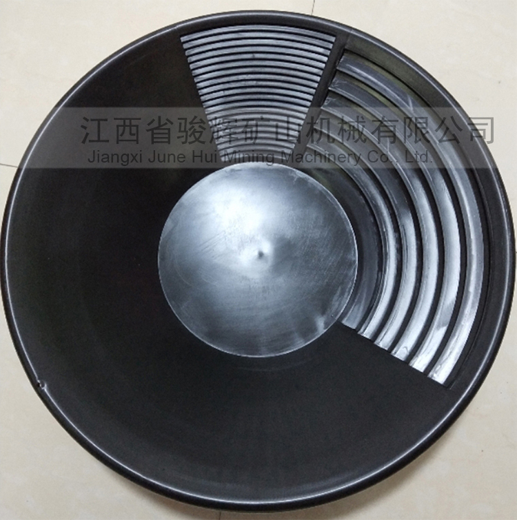 該淘金盤旁邊有四條溝槽,直徑38CM,盤底約0.25mm深,使盤底形成一個淺槽,便于淘金.