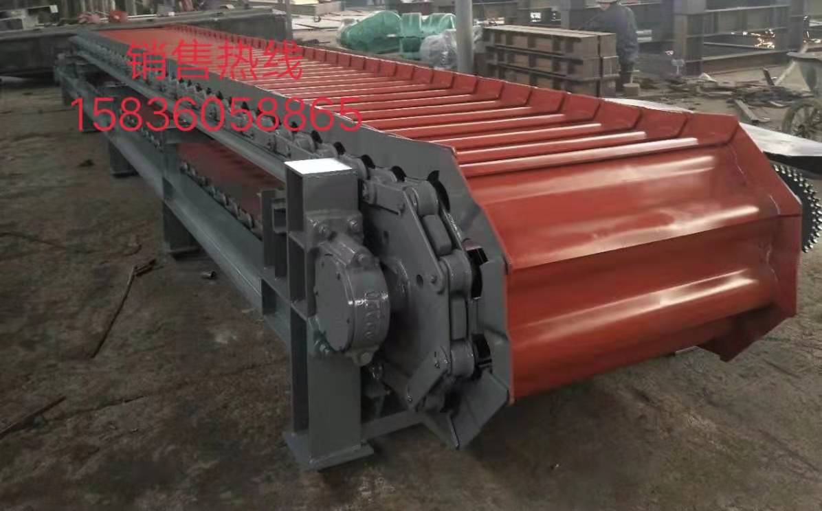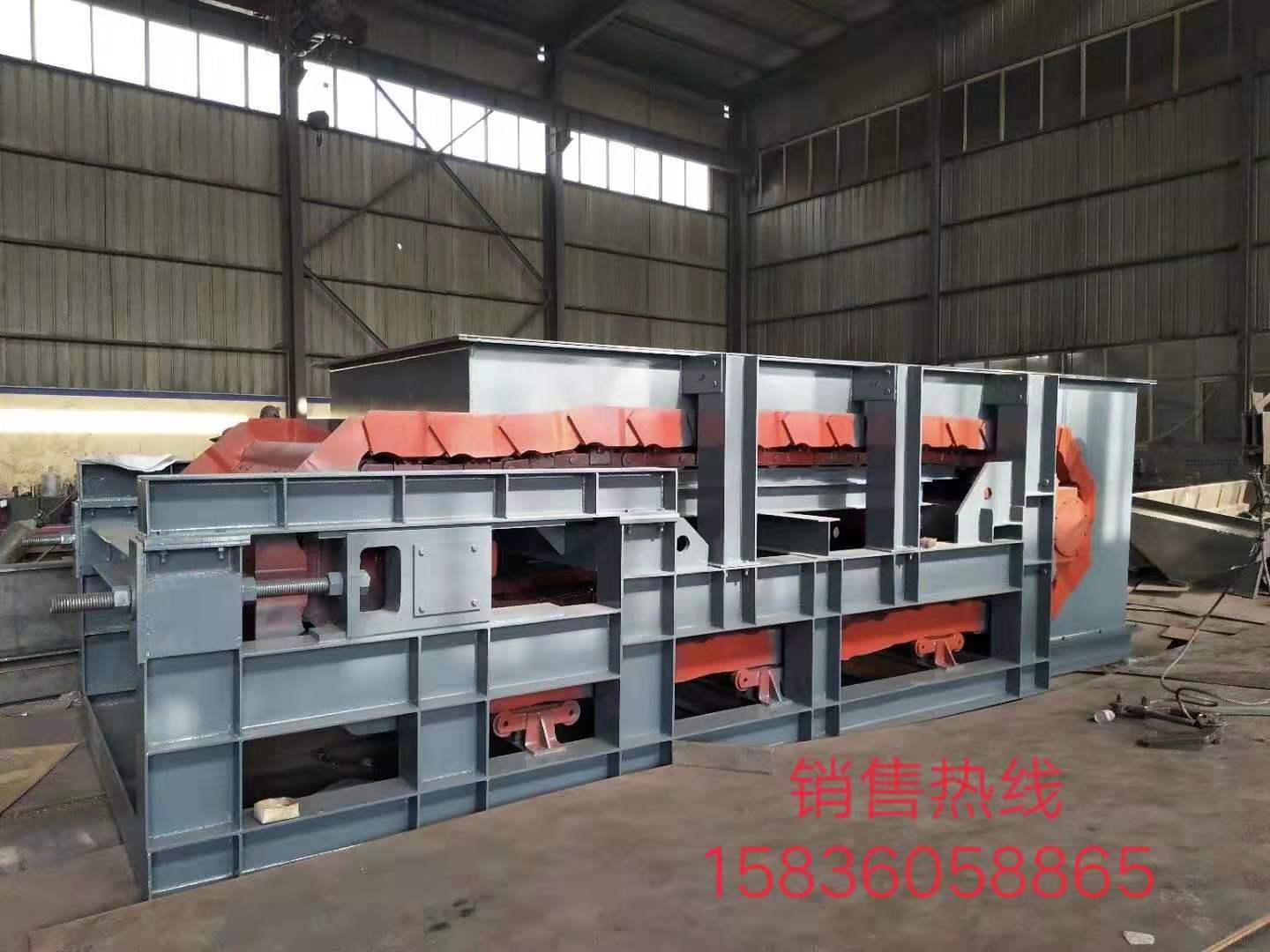 重型板式給料機(jī)是運(yùn)輸機(jī)械的輔助設(shè)備,該機(jī)在大型選礦廠破碎分級(jí)車間及水泥、建材等部門,作為料倉向初級(jí)破碎機(jī)連續(xù)和均勻給料之用,也可用于短距離輸送粒度與比重較大的物料??伤桨惭b,也可傾斜安裝,較大傾角12度。為避免物料直接打擊到給料機(jī)上,要求料倉不出現(xiàn)卸空狀態(tài)。