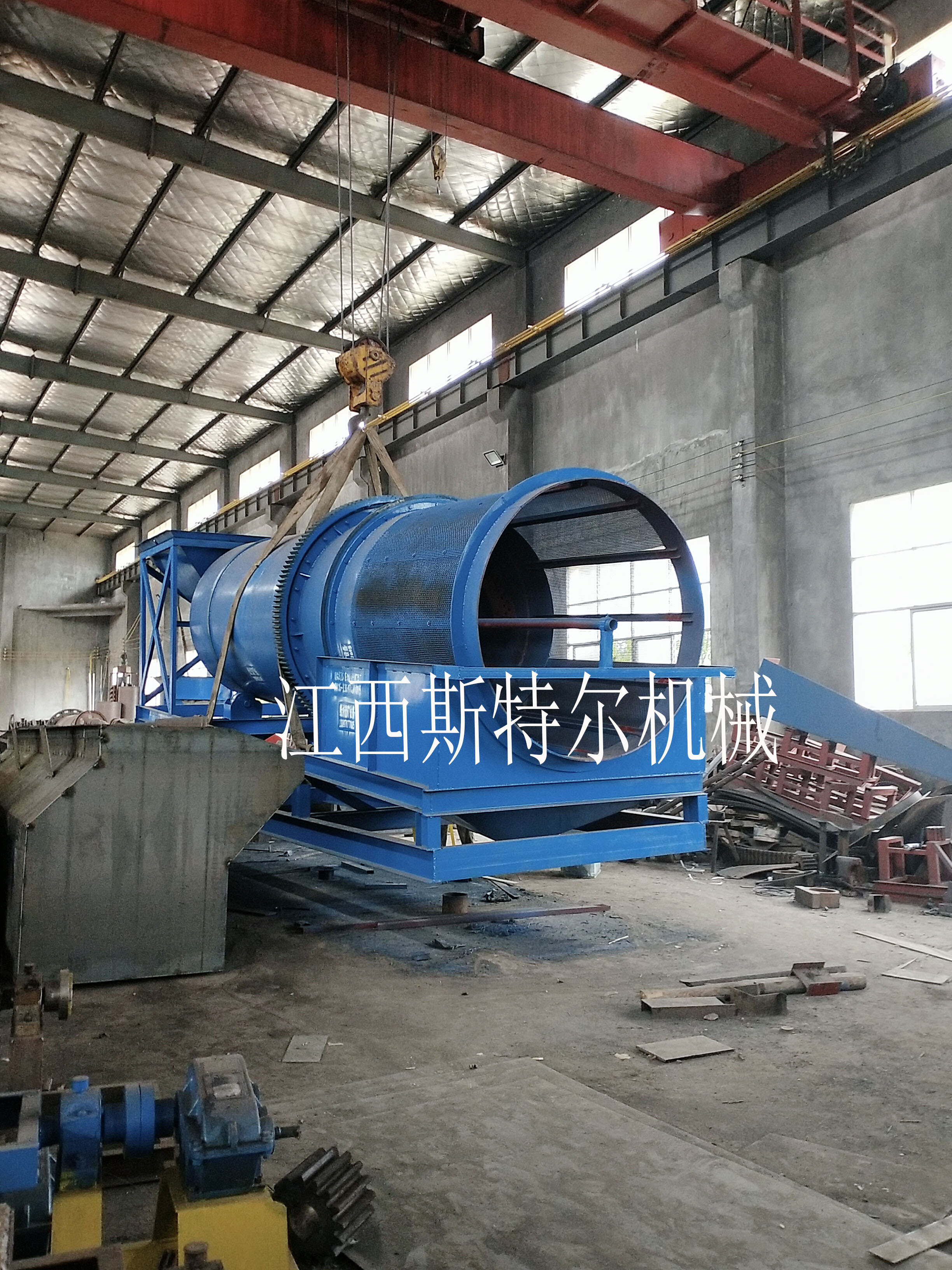 圓筒篩有滾筒、機(jī)架、漏斗、減速器、電機(jī)五個(gè)部分組成。礦物進(jìn)入滾筒后,一方面隨著滾筒轉(zhuǎn)動(dòng)而被篩選,另一方面粒度大的礦或石料沿著滾筒斜度向前溜走,通過不同的篩網(wǎng)逐漸被曬出,不大的石料篩出后落入個(gè)中漏斗,然后又人工運(yùn)出或自流