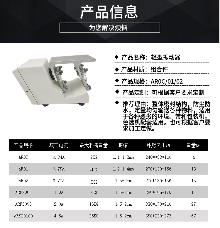 AR0C/01/02FS065/090/100小型微型電磁直線送料振動(dòng)器底座定做[詳細(xì)說(shuō)明] |