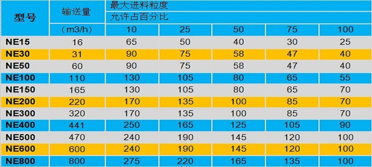 6.輸送能力大:該系列提升機(jī)具有NE15~NE800多種規(guī)格。提升量范圍為15~800m3/h。