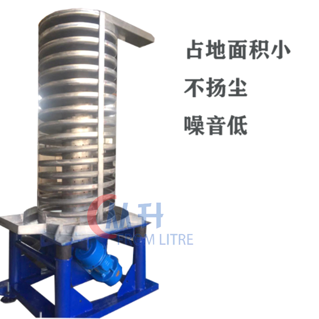 DZC垂直輸送機(jī)采用振動(dòng)電機(jī)作振動(dòng)源,利用兩振動(dòng)電機(jī)的合成振幅,將物料沿螺旋輸送槽向上輸送。DZC垂直輸送機(jī)主要用于提升顆粒狀、粉狀、塊狀物料。本輸送機(jī)結(jié)構(gòu)簡(jiǎn)單,維修容易,物料定量送出,輸送量連續(xù)可調(diào),可作為各行業(yè)中,小顆粒物料的垂直輸送之用.除具有從下向上提升物料外,還可以完成對(duì)物料的干燥、冷卻作用。DZC系列電機(jī)振動(dòng)垂直提升機(jī)是由提升槽、振動(dòng)電機(jī)、減振系統(tǒng)和底座等組成。該系列提升機(jī)是采用振動(dòng)電機(jī)作為振動(dòng)源,固定在提升槽上的兩臺(tái)相同型號(hào)的振動(dòng)電機(jī)中心線交叉一定角度安裝,并做相反方向自同步旋轉(zhuǎn),振動(dòng)電機(jī)所帶的偏心塊在旋轉(zhuǎn)時(shí)各個(gè)瞬間位置所產(chǎn)生的離心力之分力沿拋擲方向作往復(fù)運(yùn)動(dòng),使支承在減振器上的整個(gè)機(jī)體不停振動(dòng),使物料在提升槽內(nèi)被拋起的同時(shí)向上運(yùn)動(dòng),物料落入入料槽后,開始被拋起,此時(shí)可以使物料與空氣充分接觸,還可以起到散熱冷卻的作用。