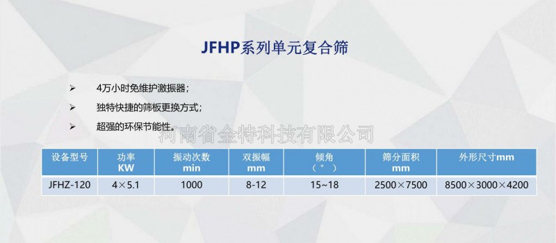 JFHP系列單元復(fù)合篩一般入料粒度≤5mm,分級粒度1~3 mm.