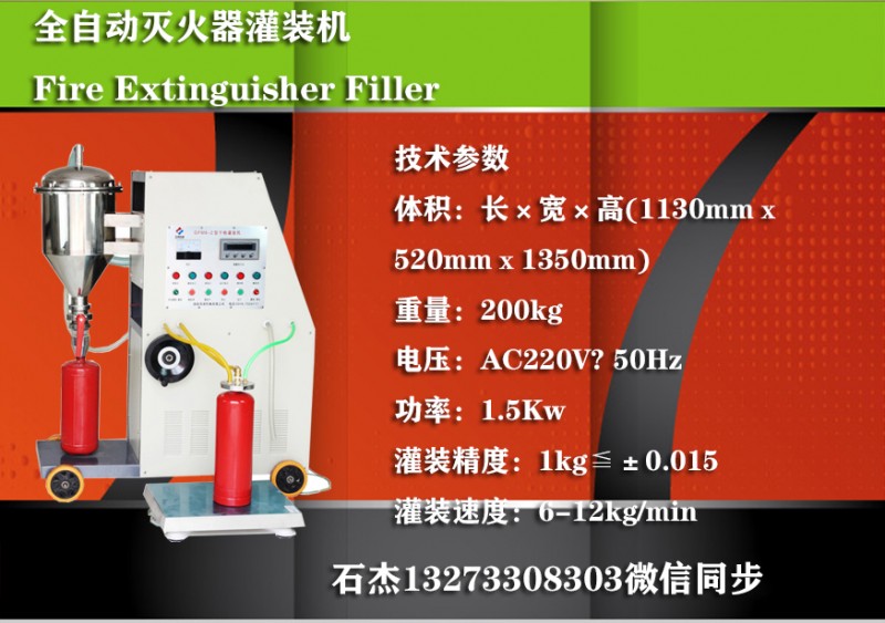滅火器充裝設(shè)備能夠使滅火器瓶體在輸送帶上等距離勻速移動,并通過灌裝裝置進行干粉灌裝,由于灌裝裝置能夠?qū)崿F(xiàn)邊灌裝邊稱重,因此可以控制灌粉量,充分避免返工作業(yè),大大減輕了工人勞動量,提高灌裝效率,非常適合于干粉滅火器灌裝流水線的平穩(wěn)運行。上述灌裝裝置使用的真空灌裝頭,結(jié)構(gòu)簡單,設(shè)計巧妙,通過在真空抽氣腔設(shè)置抽氣管接頭和在干粉過腔頂部開設(shè)平壓通孔,實現(xiàn)負壓抽吸和負壓解除的迅速轉(zhuǎn)換;同時,配合帶有擺動堵板的進管,使干粉灌裝可以即開即停;此外,注管伸入瓶體內(nèi),可以避免粉灑落到瓶口處,當(dāng)密封堵頭打開時,外部空氣進入干粉過腔內(nèi),可將腔體內(nèi)殘留的粉全部吹入瓶內(nèi);通過上述措施,有效提高了灌裝精度和灌裝效率,改善了現(xiàn)場環(huán)境,節(jié)約了灌裝成本。
