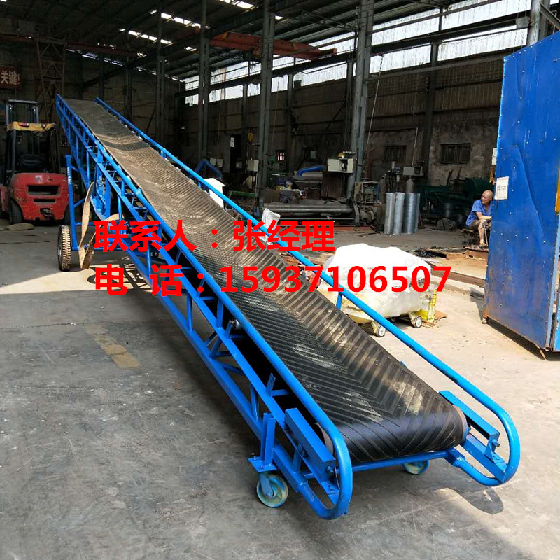 適用于散狀物料或成件物品的短途運輸和裝卸工作。采用鋼管結構,輕巧美觀,機動性好。轉動裝置為電動滾筒,并配有充氣輪胎和鋼輪兩種行走輪。機長10米以上傾角可調。