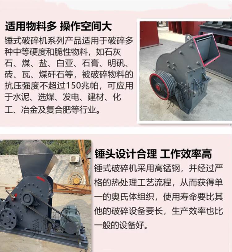 煤矸石礦石錘式細碎機 破碎機河南勇梅機械為用戶量身設(shè)計破碎、選礦、或者磨粉生產(chǎn)線配置和施工方案,適用物料:河卵石、玄武巖、花崗巖、石灰石、石英石、輝綠巖、青石、長石、建筑垃圾、鐵礦石、鐵礦、金礦等各類石頭、石塊、礦石等