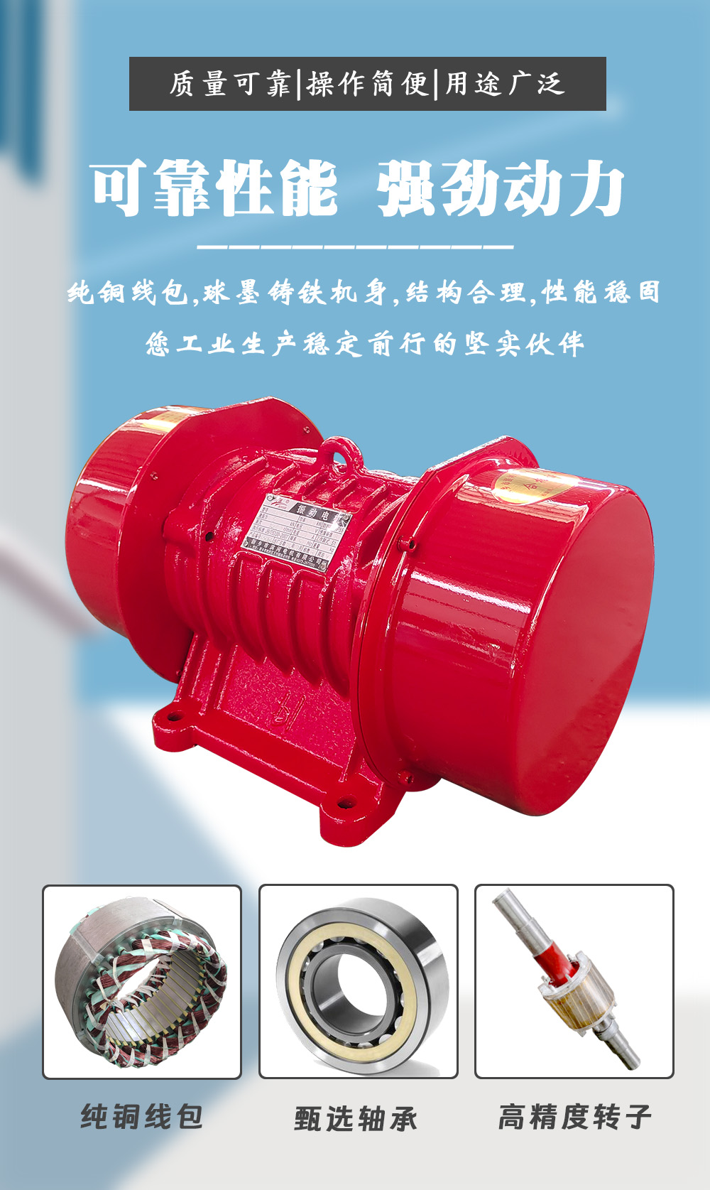 JZO系列振動電機廣泛應(yīng)用于煤炭、冶金、礦山、電力、糧食、化工、鑄造、水泥、港口等行業(yè)。它們通常用于振動篩分機、振動給料機、振動輸送機、振動落砂機、振動放礦機等設(shè)備,這些設(shè)備依賴于振動電機產(chǎn)生的振動來執(zhí)行篩選、輸送、分級等功能。此外,JZO系列振動電機還可以用于料倉的振動破拱防閉塞裝置,以防止物料在儲存過程中發(fā)生堵塞.