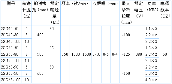 ZSG型慣性振動輸送機(jī)主要技術(shù)參數(shù)
