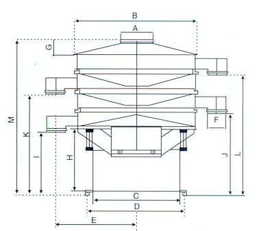 標(biāo)準(zhǔn)旋振篩/三次元振動(dòng)篩分過濾機(jī)尺寸表: