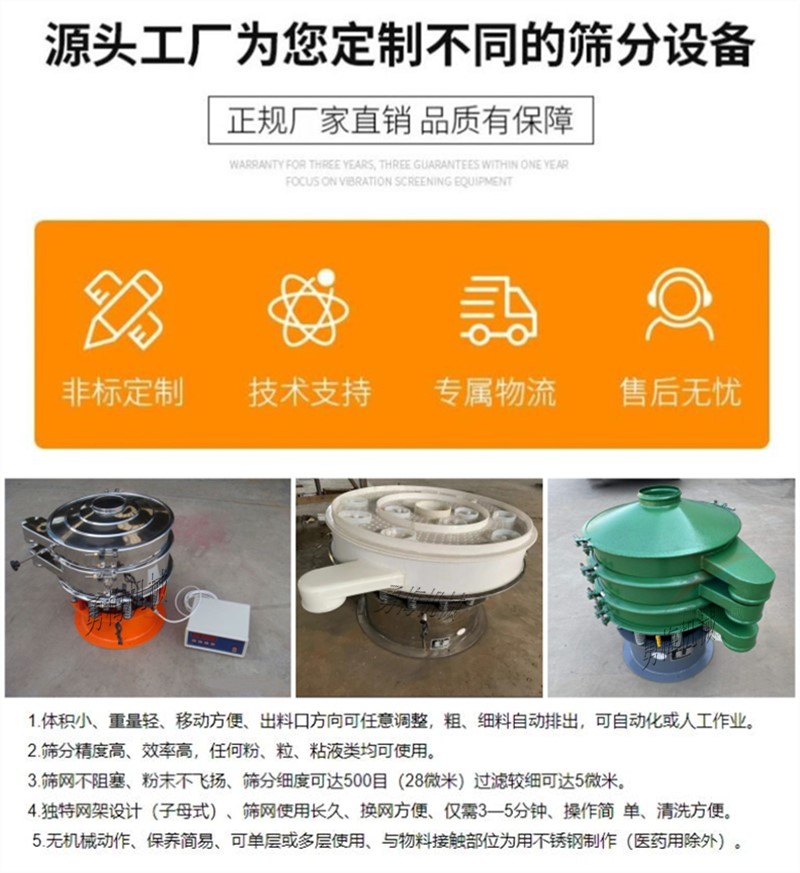 獨(dú)特網(wǎng)架設(shè)計(jì)三次元旋振篩 淀粉除雜篩噪音低、效率高,快速換網(wǎng)需3-5分鐘,17719958219 全封閉結(jié)構(gòu),適用于粒、粉、粘液等物料的篩分過濾。