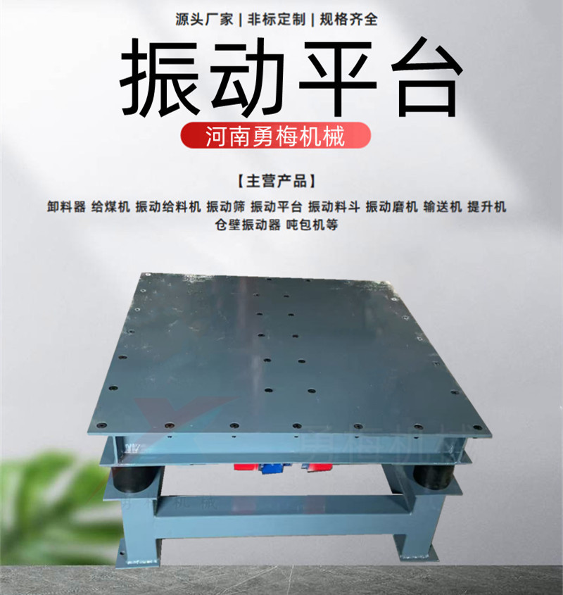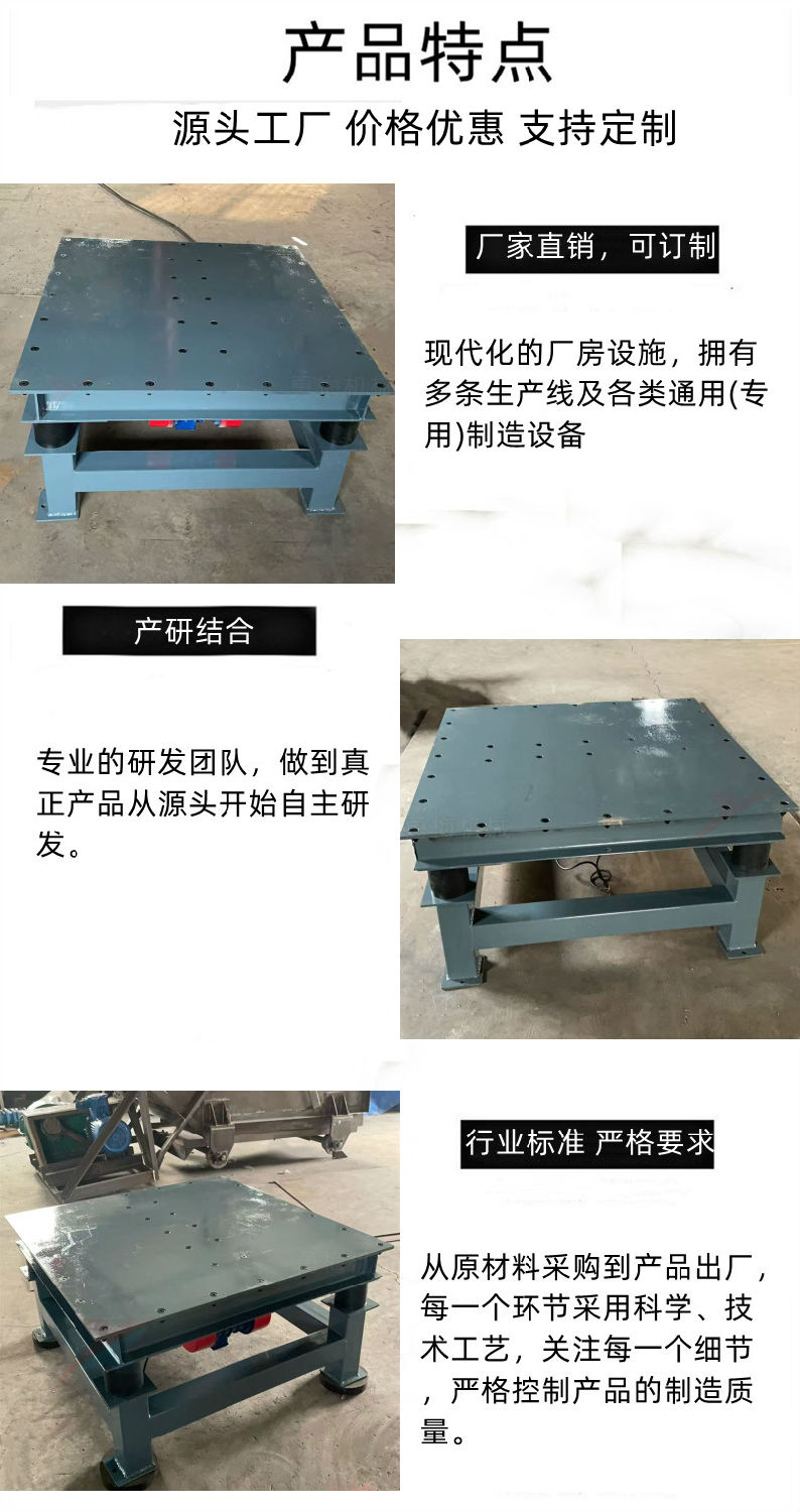 鑄造設備高頻振實臺 平板式振動平臺具有多結構支撐,結構牢固,密封性好17719958219,性能可靠,操作簡便,震動頻率可調,噪聲低,生產效率高等特點。