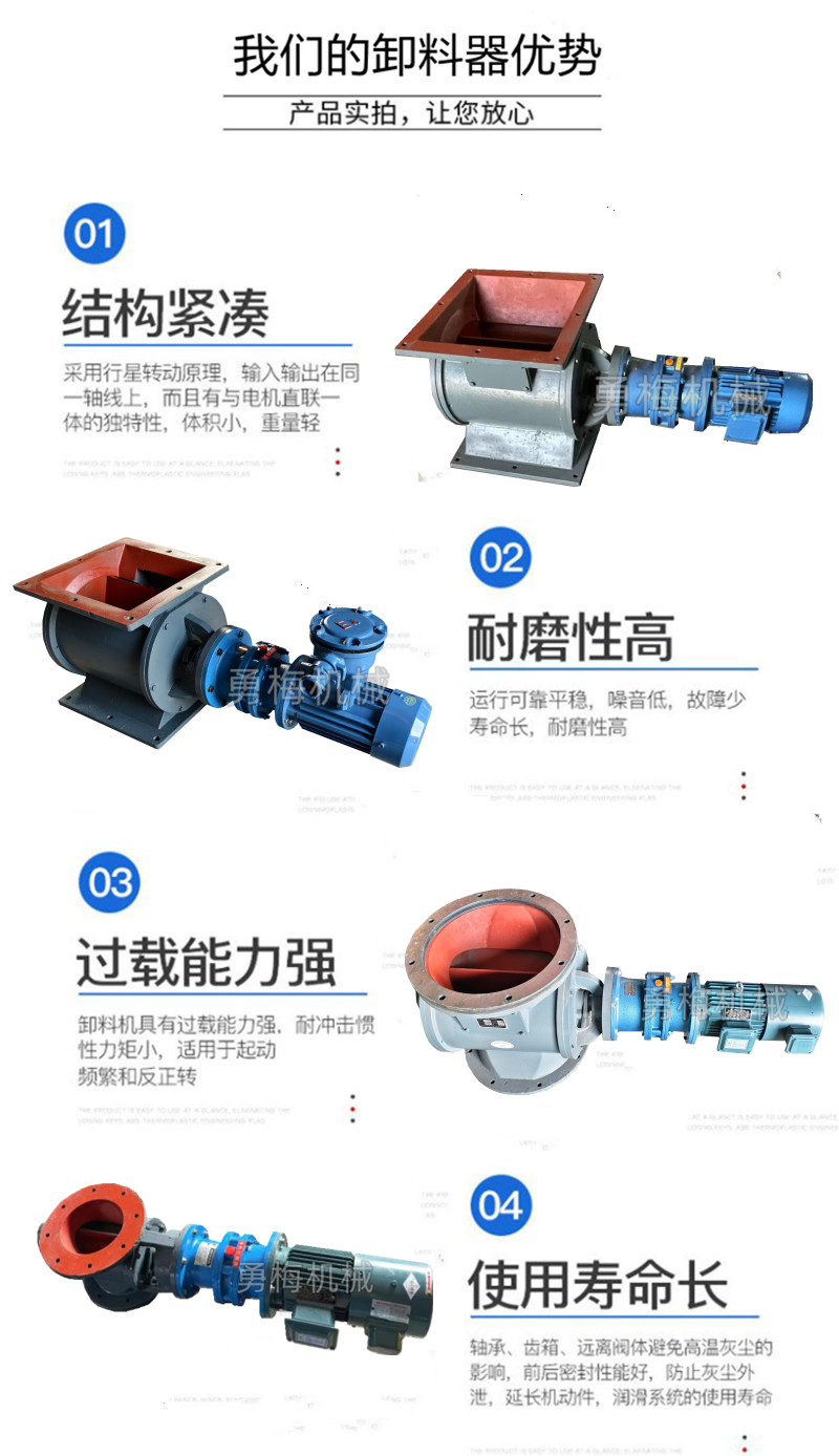 煙氣脫硫脫硝卸灰閥 消石灰下料器變頻控制系統(tǒng)接收外部信號I77l99582l9,輸出可調(diào)節(jié)頻率的電流,控制變頻電機(jī)的轉(zhuǎn)速。電機(jī)動(dòng)力經(jīng)減速機(jī)減速增扭后,傳遞至葉輪軸,帶動(dòng)葉輪在機(jī)殼內(nèi)旋轉(zhuǎn)。物料從上部料斗落入并充塞在葉輪間的空格內(nèi),隨著葉輪的旋轉(zhuǎn),物料被輸送到下部并卸出。同時(shí),機(jī)體側(cè)面的均壓排氣口將葉輪回轉(zhuǎn)產(chǎn)生的高壓氣體排走,減少氣體頂料現(xiàn)象,確保物料輸送的連續(xù)性和穩(wěn)定性。